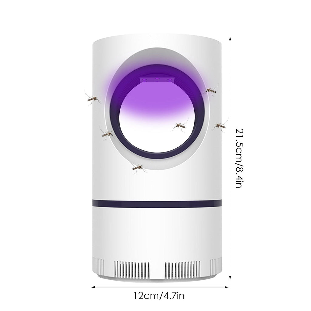 Sucção Potente: O ventilador agita fortemente o ar dentro da luminária para criar redemoinhos de ar. Assim que o mosquito se aproxima do túnel de vento, ele é sugado para a bandeja inferior pelo forte redemoinho e morre dentro da luminária.